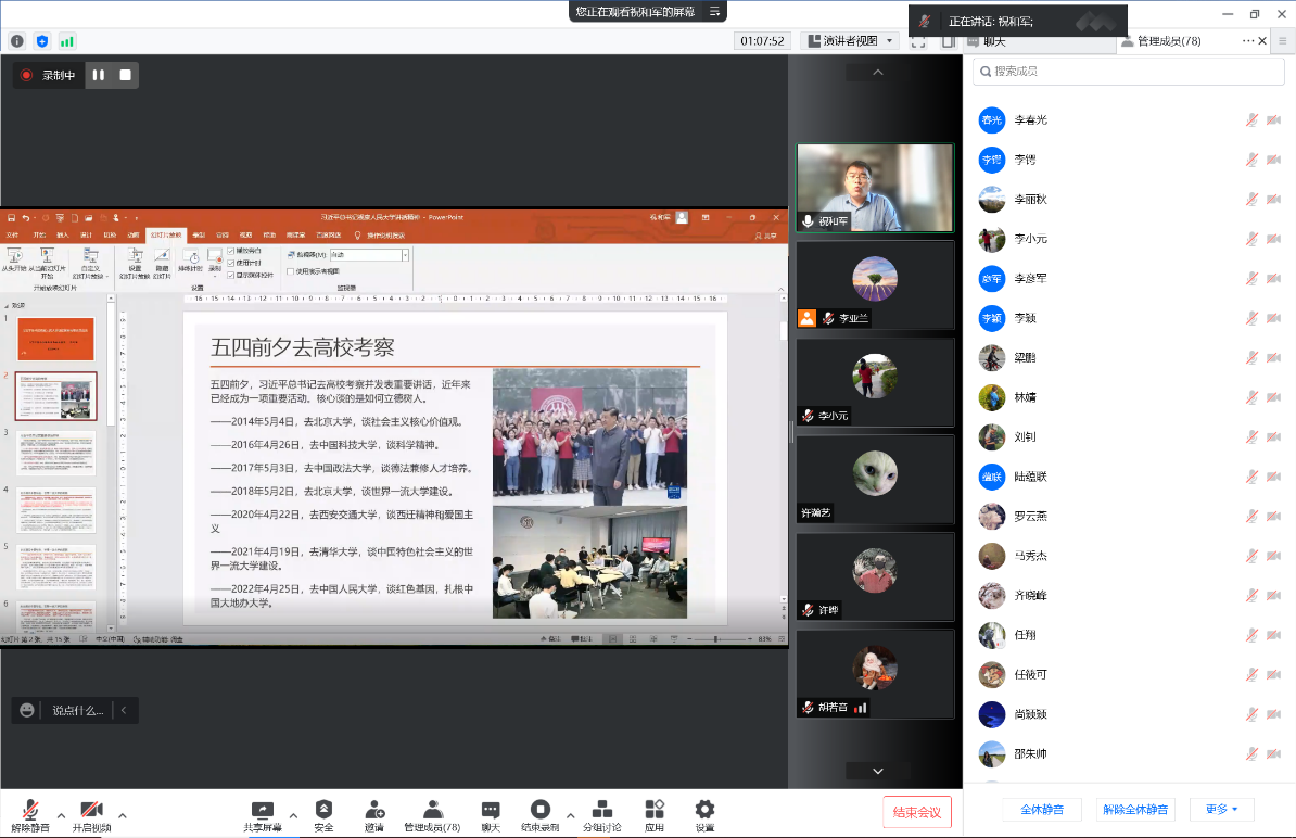 2022年5月20日下午,pg游戏电子模拟器、非洲学院全体教师集中理论学习活动在线进行。马克思主义学院党总支书记祝和军为两院全体教师进行了题为“习近平总书记考察人民大学讲话精神与思政课程建设”的讲座。学习活动由pg游戏电子模拟器、非洲学院党总支书记许晔主持。