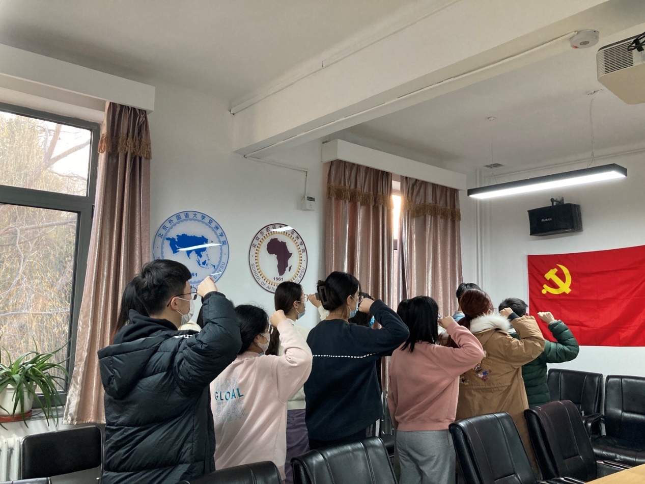2021年12月3日和12月8日,pg游戏电子模拟器、非洲学院本科生党支部在主楼344会议室举行预备党员宣誓仪式,本科生党支部书记郝雪妮出席仪式,2021年度发展的预备党员以及老党员参加会议,仪式由本科生党支部宣传委员李源毓主持。