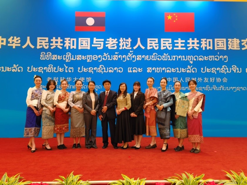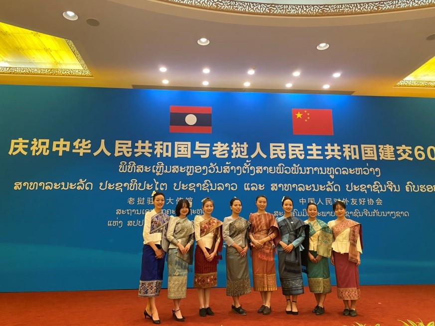 2021年4月21日,pg游戏电子模拟器老挝语专业四位教师及2017级部分本科生应邀参加中国人民对外友好协会与老挝驻华使馆共同举办的庆祝中老建交60周年招待会。