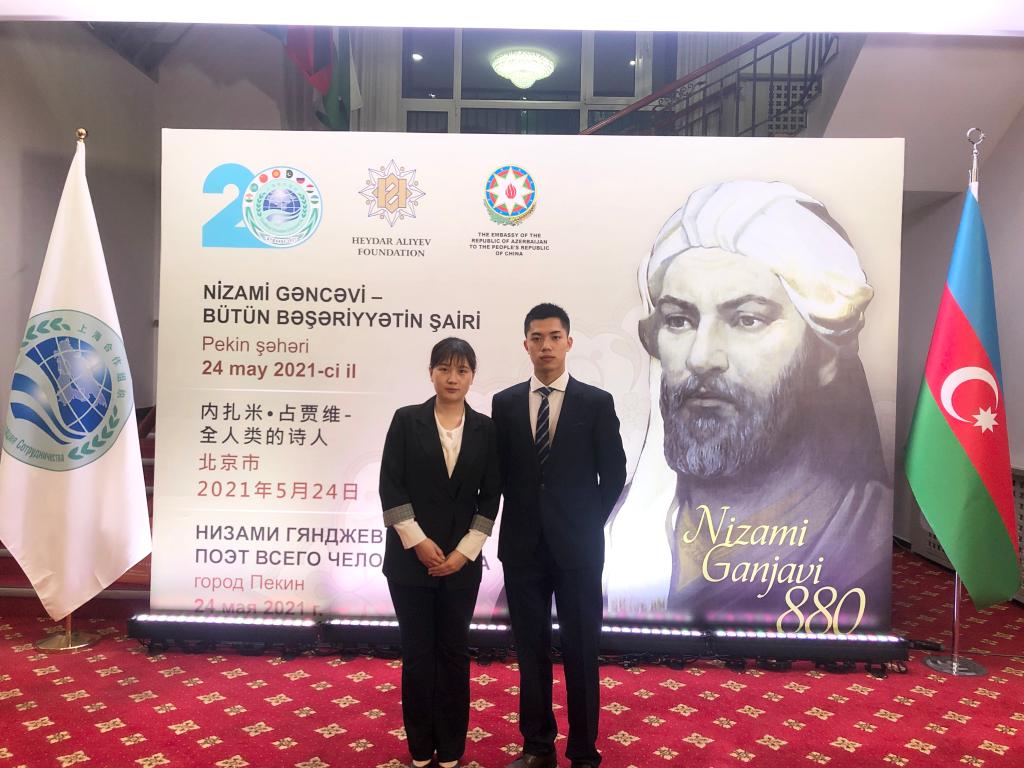 2021年5月24日晚,经阿塞拜疆驻华大使馆的邀请,pg游戏电子模拟器阿塞拜疆语专业本科生王思源和唐雨萱参与了“内扎米·占贾维—全人类的诗人”主题活动。该活动在北京上海合作组织总部举办,旨在庆祝伟大阿塞拜疆诗人,思想家内扎米·占贾维诞辰880周年。
