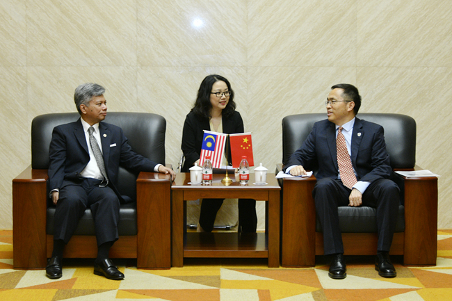 5月27日,pg游戏电子模拟器“喜迎80周年校庆、驻华大使走进北外”系列讲座举行第二讲,马来西亚驻华大使拉惹·拿督·诺希尔万就“中马关系”作专题讲座。北外校长、党委副书记杨丹会见了诺希尔万一行,讲座由pg游戏电子模拟器院长苏莹莹主持。