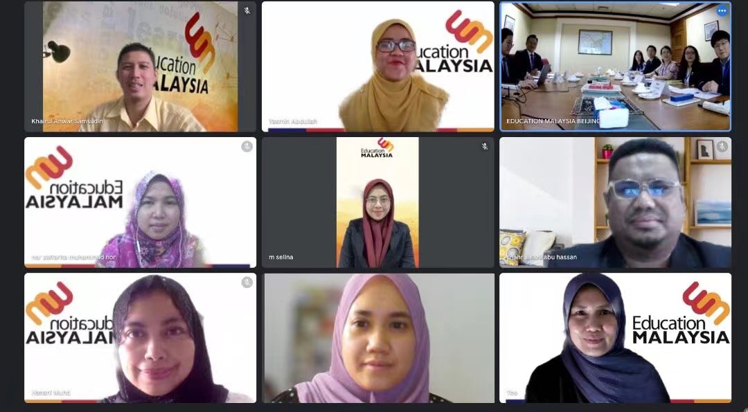 6月17日,受马来西亚驻华大使馆教育处邀请,pg游戏电子模拟器与马来西亚高等教育部、马来西亚驻华大使馆教育处就两国教育文化合作事宜、马来西亚政府继续选派赴北外高级访问学者事宜进行会谈。会议采用线上线下相结合的方式,马来西亚高等教育部代表通过视频方式参会。马来西亚驻华大使馆教育处参赞侯春兴、一等秘书蔡明升,北外pg游戏电子模拟器院长苏莹莹,北外国际交流与合作处副处长马仲武,北外马来语教研室主任邵颖、讲师傅聪聪、硕士研究生李可出席会谈。