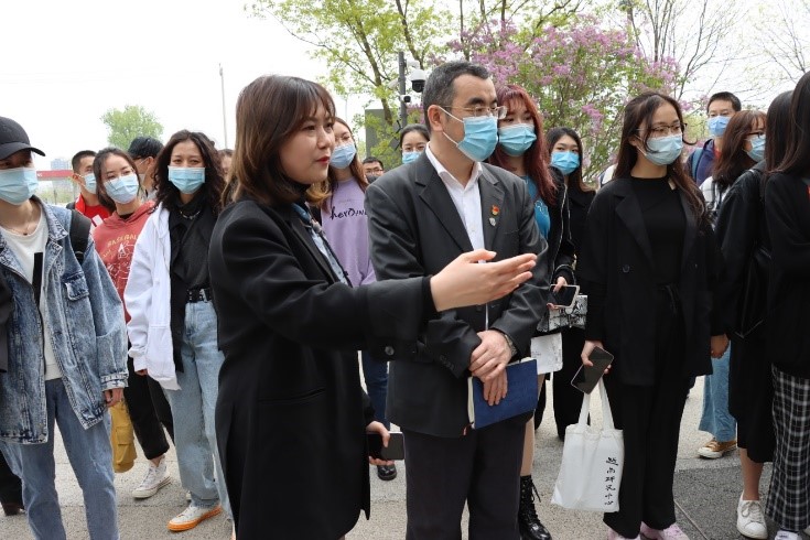 众师生认真听取工作人员讲解