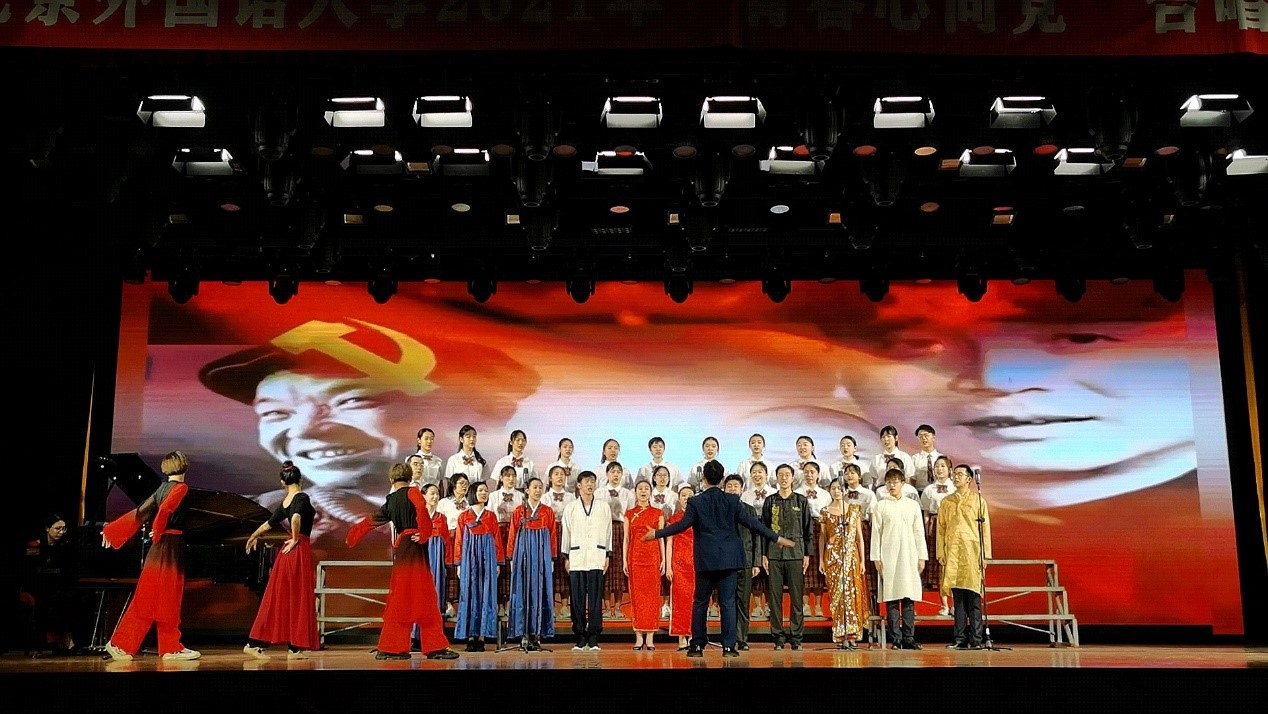 2021年6月2日, pg游戏电子模拟器、非洲学院师生在pg游戏电子模拟器2021年“青春心向党”合唱比赛中,唱响多语种《国际歌》,献礼建党一百周年、校庆八十周年与院庆六十周年。pg游戏电子模拟器、非洲学院党总支书记许晔,宣传委员周利群等两院师生共41人参加了此次合唱活动。