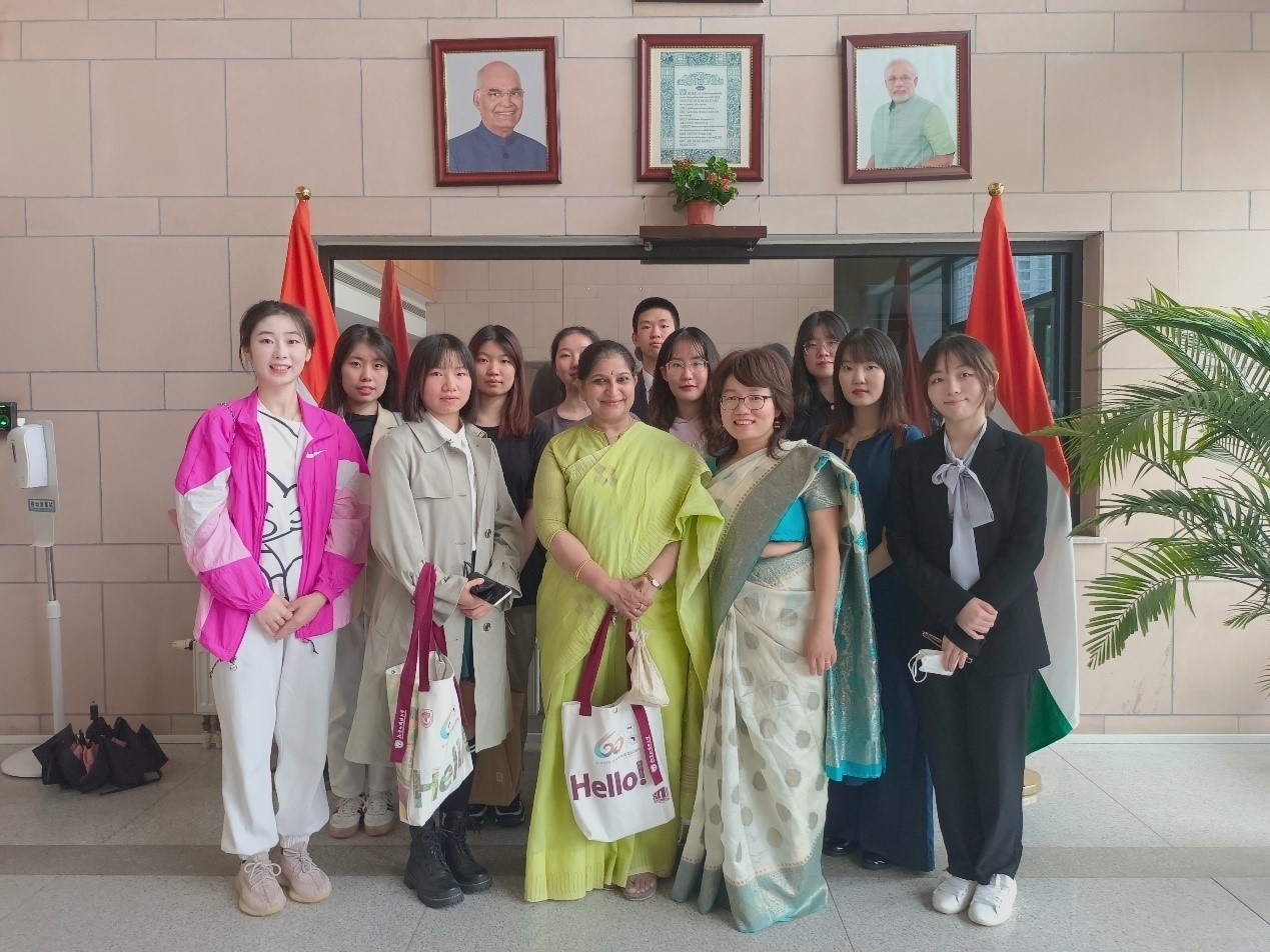 2021年10月2日,pg游戏电子模拟器师生,参加由印度驻华大使馆在北京举办的“甘地诞辰日暨世界非暴力日”纪念活动。参加活动的有梵语巴利语教研室主任周利群副教授,印度社会文化古代方向的1名研究生,梵语巴利语和印地语专业的10名本科学生。