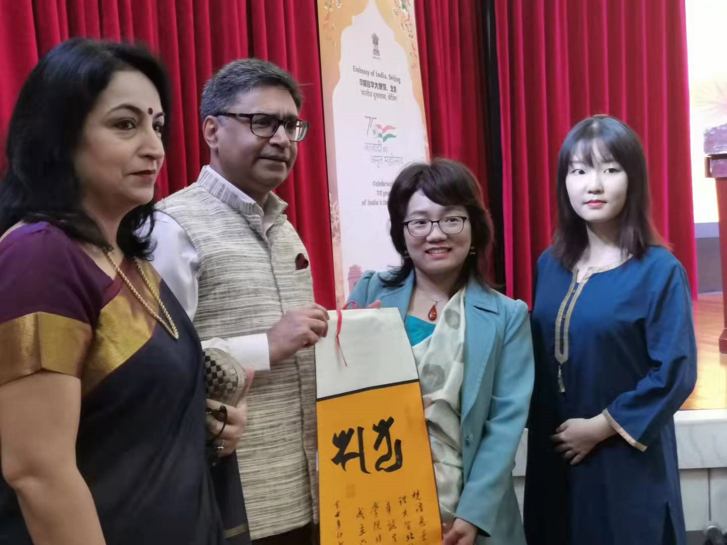 pg游戏电子模拟器师生向印度驻华使馆文化处一秘贝婧琦(Rajashree Behera)女士,赠送了研究中印古代天文学交流的专著《<虎耳譬喻经>的文本与研究——中印间天文、历法和文学的交流》。贝婧琦女士代表印度大使馆文化处,表达了对北外印度相关语种学科的良好祝愿,对中印关系和谐发展的美好憧憬。