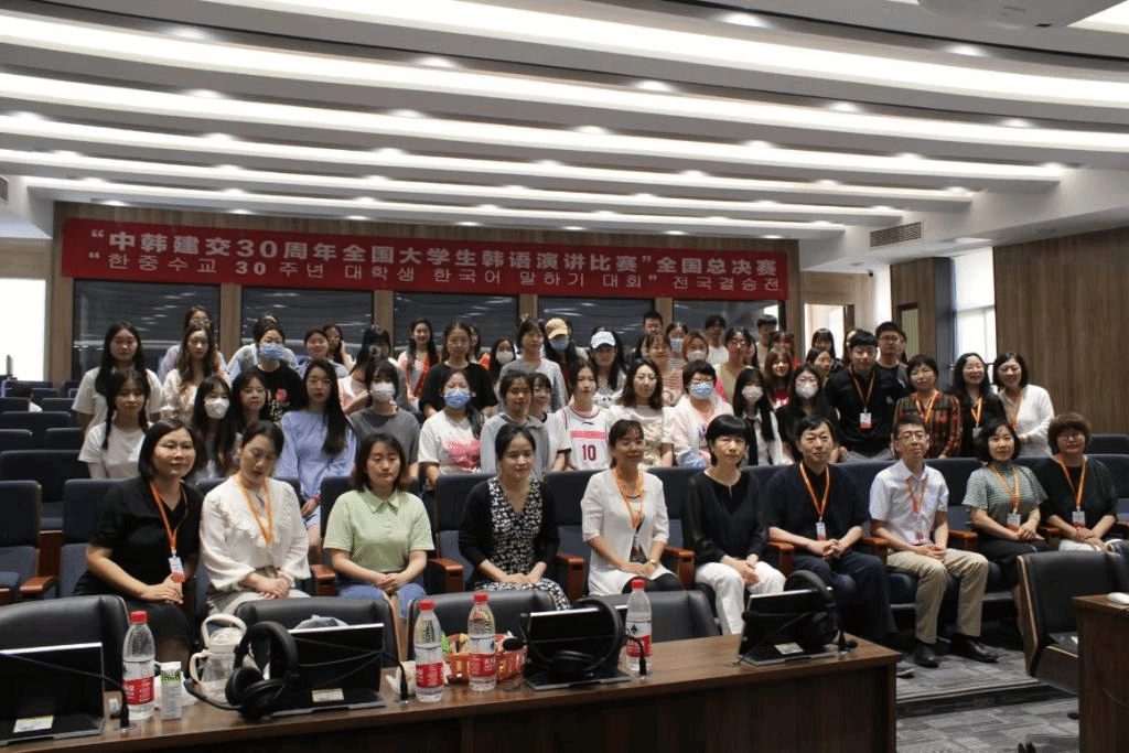 在中韩建交30周年之际,2022年6月5日,由山东师范大学外国语学院举办,韩国学中央研究院和韩国旅游发展局大力支持的“中韩建交30 周年全国大学生韩语演讲比赛”决赛阶段比赛圆满落幕。