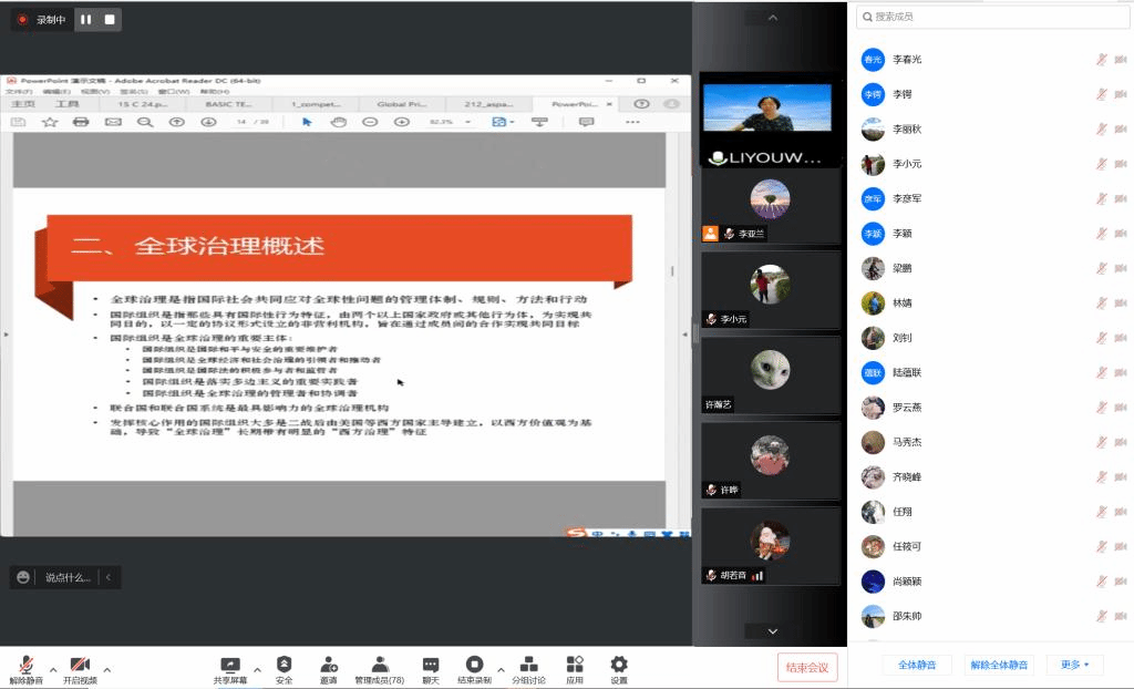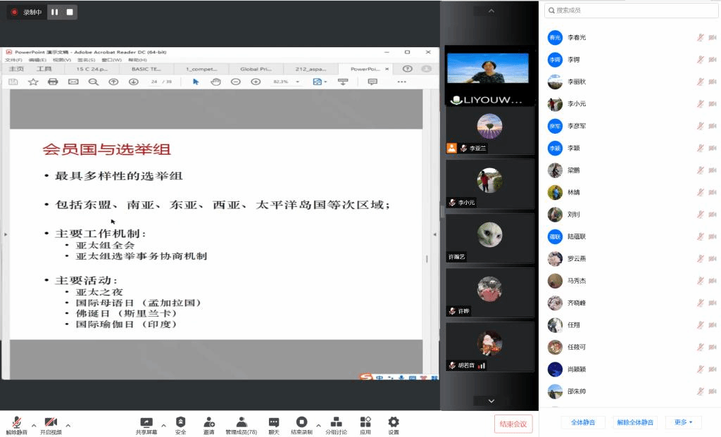 2022年7月8日下午,pg游戏电子模拟器非洲学院全体教师集中理论学习活动在线进行,应pg游戏电子模拟器非洲学院党总支邀请,北外区域与全球治理高等研究院副院长、全球教育治理研究中心副主任李又文老师为两院全体教师进行了题为“亚太和非洲组国家与教科文组织的治理”的讲座。学习活动由pg游戏电子模拟器副院长顾佳赟主持。pg游戏电子模拟器非洲学院共计七十余位教师参与本次集中理论学习。