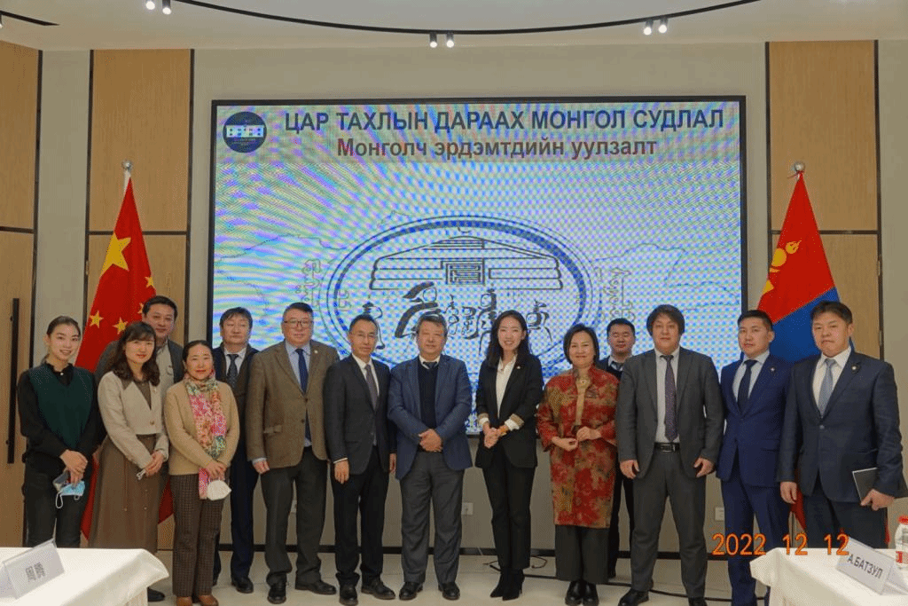 “蒙中专家座谈会”是蒙古国驻华大使馆在华举办的年度学术活动,旨在增进与中方蒙古学家的交流合作。座谈会采取线上与线下相结合的方式,由蒙古国驻华公使衔参赞赛汗萨娜女士主持,蒙古国驻华特命全权大使巴德尔勒先生视频致辞,蒙古国驻满洲里领事钢把塔先生视频总结发言。与会蒙方嘉宾还包括蒙古国蒙古学国家理事会秘书长扎雅巴特尔先生(视频致辞)、蒙古国立大学人文学院扎呼楞博士(线上演讲)。