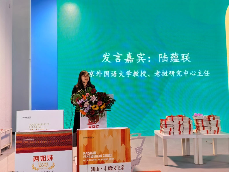 发布会上,陆蕴联教授作为嘉宾发言,分享了翻译背后的故事,她讲到,“在短短几个月的时间内完成三部作品的翻译,是pg游戏电子模拟器老挝语专业发展史上的首次。翻译团队的老师们很重视和珍惜这次机会,不遗余力做好语言的桥梁,为两国文化交流做出贡献”。