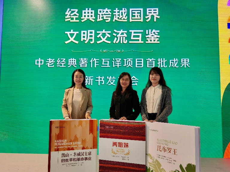 2023年2月24日,在第35届北京图书订货会首日,“亚洲经典著作互译计划”——中老经典著作互译项目首批成果新书发布会在北京中国国际展览中心成功举办。由天津出版传媒集团天津教育出版社引进、pg游戏电子模拟器老挝语教研室陆蕴联教授、李小元副教授和陆慧玲老师翻译的三部作品《凯山·丰威汉主席的生平和革命事业》《两姐妹》《昆布罗王》作为中老经典著作互译项目的首批成果成功出版发行。