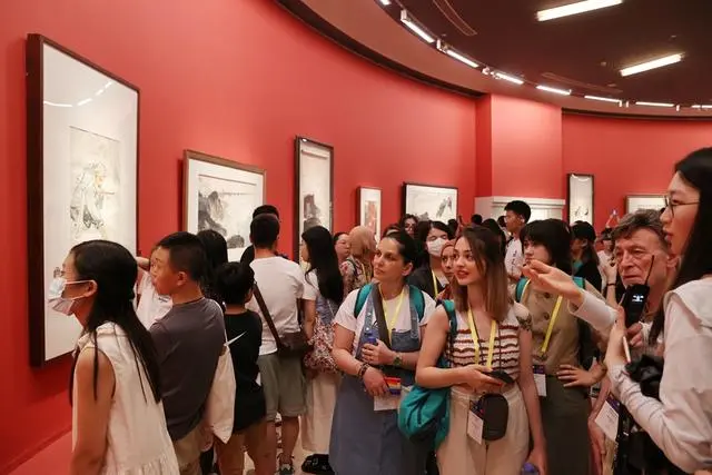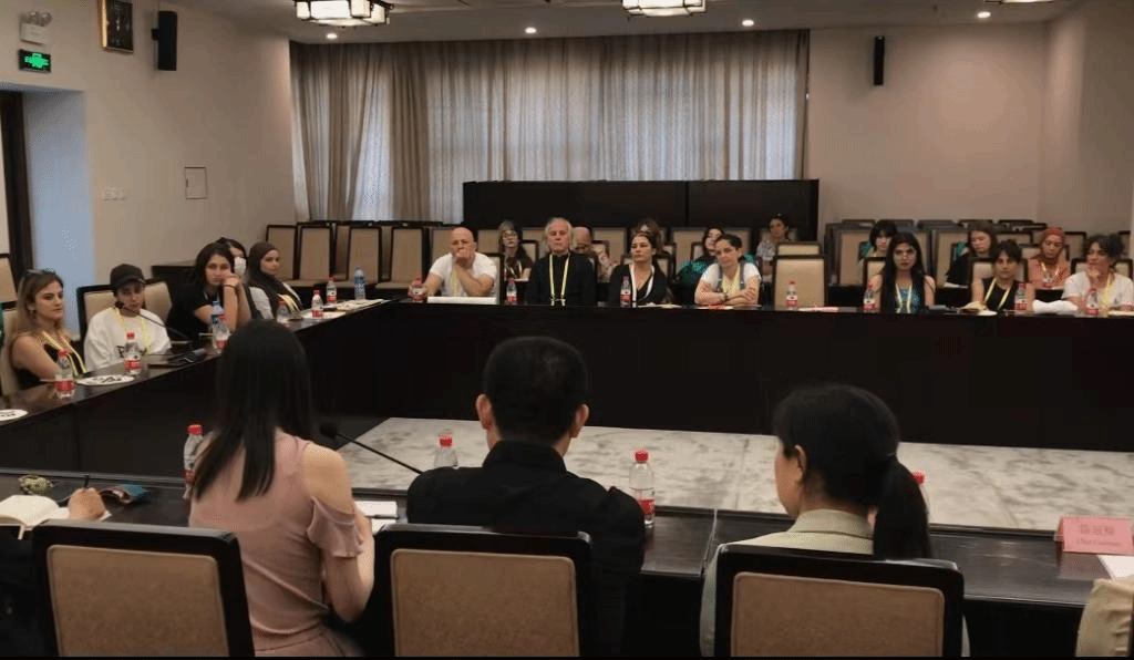 6月29日,文化和旅游部国际交流与合作局副局长张维国以及中国美术馆副馆长潘义奎与代表团举办座谈会。(陈恩琪同学(图中左一)担任翻译)