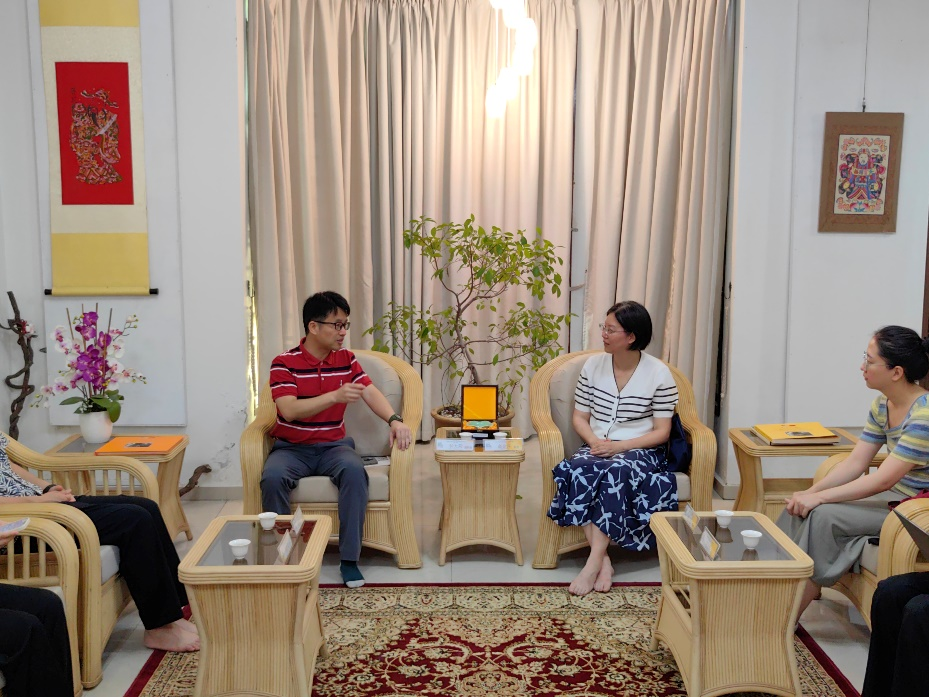 实践团与马来西亚侨生(峇峇娘惹)工会会长颜泳和进行了座谈交流。颜会长生动地讲述了峇峇娘惹在马来西亚的历史和生存现况。峇峇娘惹是早年随郑和下西洋,留在当地的中国先辈和当地马来人通婚形成的种族。峇峇娘惹保留了华人传统文化习俗,也是郑和和平与包容文化的一种体现。然而,如今峇峇娘惹在当地的发展也存在一些困境,峇峇娘惹数量越来越少,他们不属于马来西亚的土著种族,如华人和印度人,相关权益难以保障。颜会长说,希望有更多人了解峇峇娘惹文化,为这个族群争取更多人的支持。颜会长赞同中国国家主席习近平提出的全球文明倡议,尊重各种文明的独特性、合理性,求同存异。