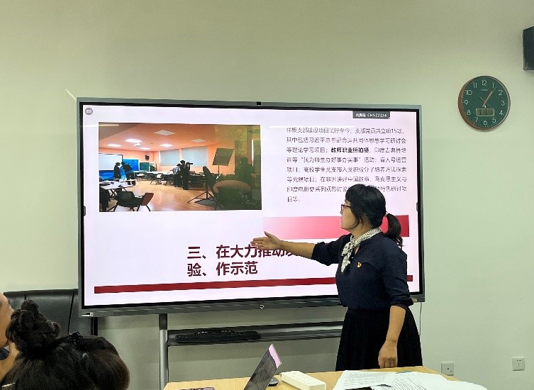 2023年9月13日下午,pg游戏电子模拟器非洲学院第二教师党支部开展“学习贯彻习近平新时代中国特色社会主义思想”专题组织生活会暨“我为师生办好事办实事”主题党日活动。欧洲语言文学学院教师党支部书记李婧敬受邀参会。