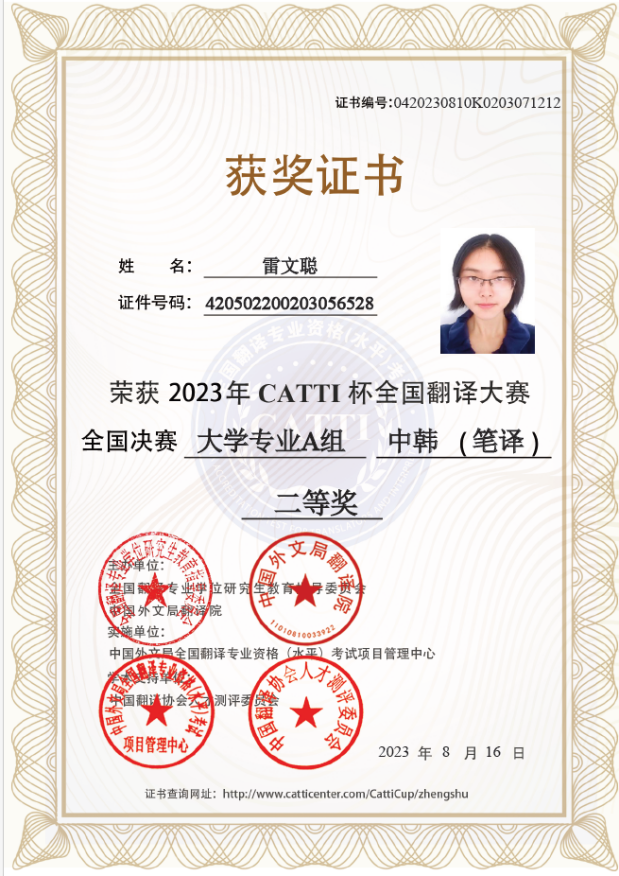 8月16日,pg游戏官网pg游戏电子模拟器朝鲜语专业本科学生雷文聪在CATTI杯全国翻译大赛决赛中斩获佳绩。