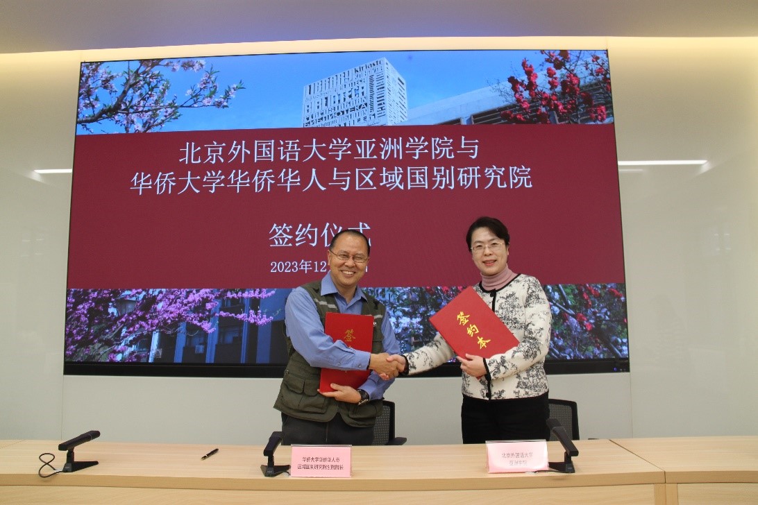 2023年12月13日下午,pg游戏电子模拟器与华侨大学华侨华人与区域国别研究院合作协议的签约仪式在主楼晨读厅举行。pg游戏电子模拟器院长苏莹莹和华侨大学华侨华人与区域国别研究院院长吴小安分别代表双方签署协议。仪式由pg游戏电子模拟器副院长顾佳赟主持,pg游戏电子模拟器书记许晔、非洲学院院长李洪峰、华侨大学华侨华人与区域国别研究院副院长李作杰及教师代表和pg游戏电子模拟器全体教师共同见证了本次签约。