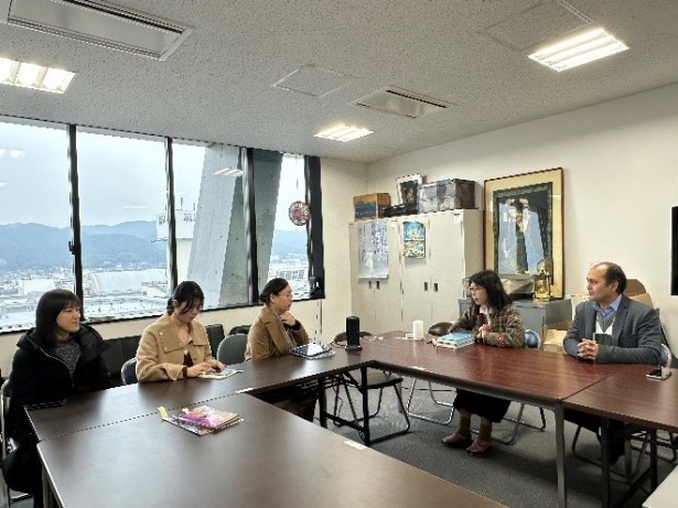 1月10日,调研团随后拜访了位于大阪大学箕面校区的大阪大学外国语学院。调研组走进印地语课堂,与学生交流语言学习的相关情况,随后就非通用语人才培养与学科建设相关问题访谈了外国语学部印地语专业的長崎広子教授、乌尔都语专业的外教,并走访参观了中文系、印尼语专业以及大阪大学外国语学院图书馆。