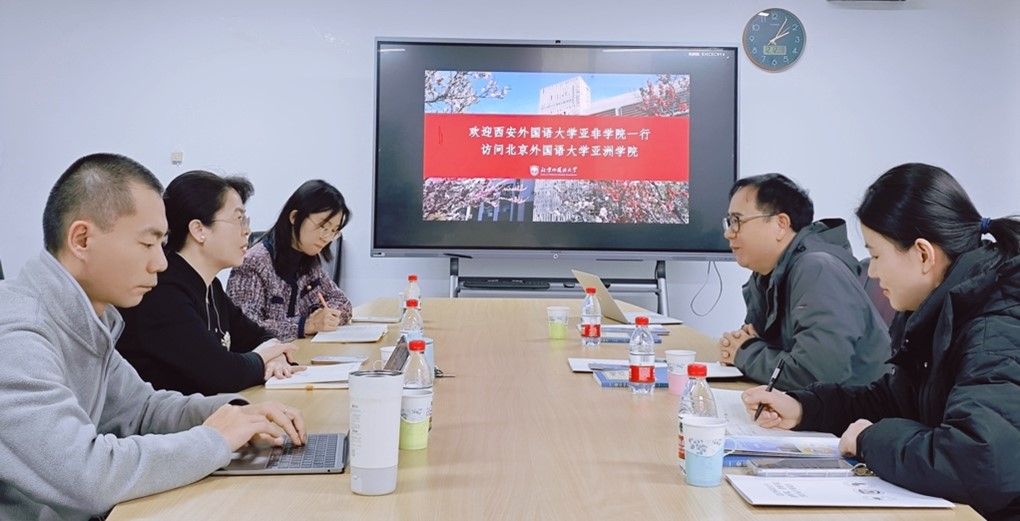 12月12日,pg游戏电子模拟器院长苏莹莹、副院长汪波以及pg游戏电子模拟器、非洲学院辅导员罗云燕共同会见西安外国语大学亚非学院院长马福德和辅导员高洁。双方就“十五五”期间亚洲非通用语种专业学科建设、专业发展、人才培养及改革创新等各方面规划进行了广泛交流,并就现有发展思路与实践互相分享宝贵经验。