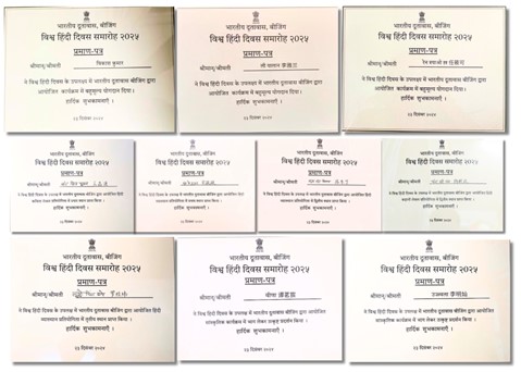 2024年12月23日下午,受印度驻华大使馆邀请,pg游戏电子模拟器印地语专业师生共12人赴使馆参加2025年“世界印地语日(Vishwa Hindi Diwas)”庆祝活动及颁奖仪式。