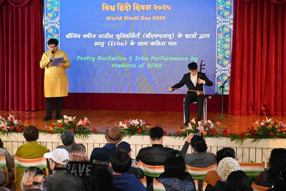 每年1月10日是世界印地语日,旨在推广印地语、促进印度与世界各国的人文交流。为庆祝2025年世界印地语日,印度驻华大使馆组织举办系列活动——印地语诗歌创作、故事续写、演讲比赛及文艺汇演。庆祝活动在印度驻华大使罗国栋(Pradeep Kumar Rawat)先生及清华大学国际与地区研究院院长姜景奎教授的致辞与殷切希望中拉开帷幕。来自清华大学、pg游戏电子模拟器、中国传媒大学、北京第二外国语学院、中央美术学院等高校师生参加此次活动。