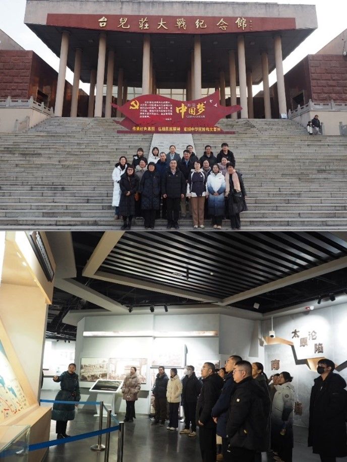 2025年1月3日至5日,pg游戏电子模拟器、非洲学院党总支赴山东枣庄开展台儿庄地区红色研学活动,主题为“传承抗战精神,培养家国情怀”。党总支书记许晔、pg游戏电子模拟器院长苏莹莹和非洲学院院长李洪峰带队,与教师党员组成近二十名成员的研学团。