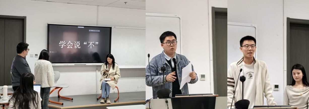分享会上,主持人首先回顾了假期读书活动的开展情况。随后,各组依次进行分享。《我用一生爱中国》组讲述了伊莎白・柯鲁克在中国深入进行人类学调查以及投身外语教学的生平。《破茧:从石库门到天安门》组巧妙运用 AI 技术,以新颖的形式为大家生动展现了建党的伟大精神。《王赓武回忆录》组展现了历史学家王赓武作为留洋华人在文化认同与身份追寻上的深刻思考。《自我的诞生》组通过情景剧演绎让大家理解如何建立自我的边界。《苏东坡传》组展现了才华横溢却命途多舛的苏东坡文人形象。《智人之上》组深入剖析了书中对人类未来发展走向的探讨,分享了对人类超越自身局限的思考。
