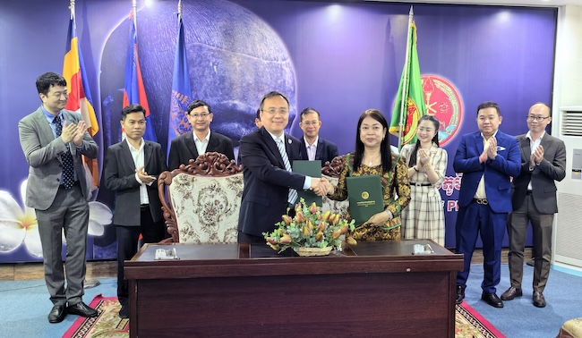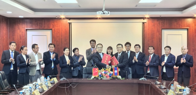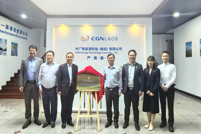 代表团还访问了中广核能源技术(老挝)公司。公司执行董事曾勇、董事吴兴华接待了代表团一行。双方就学生海外就业实习、强化人才储备、输送国际学生等事项交换了意见,共同签署《人才培养合作协议书》,并为“pg游戏电子模拟器学生海外实习实践基地”揭牌。