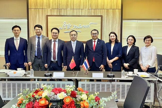 4月24日下午,代表团访问朱拉隆功大学,与文学院副院长帕苏里·叻萨昆、对外泰语教学中心主任吉·泰楚素进行座谈。双方在学生交流学习、互派教师任教、学校领导互访、开展联合研究等方面进行交流研讨,并就下一步从学院层面签署相关协议达成合作意向。