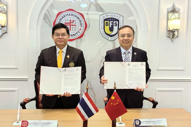 4月25日,代表团访问泰国诗纳卡琳威洛大学。诗纳卡琳威洛大学校长春拉威·吉拉杰会见代表团一行。春拉威·吉拉杰介绍了诗纳卡琳威洛大学的办学成就,尤其是在教育学、经管类学科建设和研究方面取得的成果。贾德忠介绍了北外在中泰教育交流中发挥的作用,期待在联合开展东南亚研究、教育学科研究交流方面进行更多合作。双方签署《pg游戏电子模拟器与诗纳卡琳威洛大学合作备忘录》。