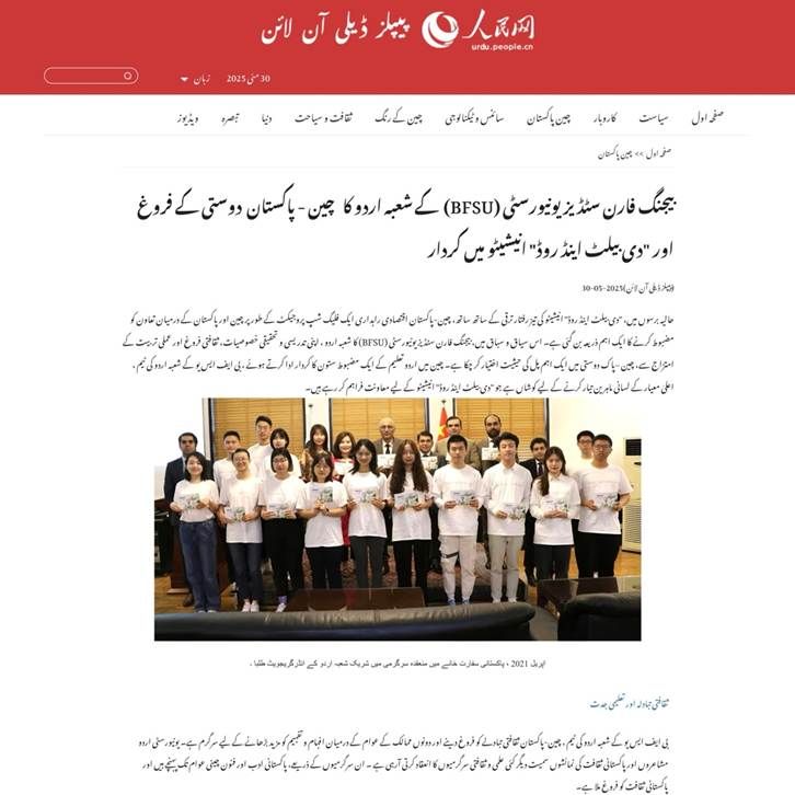 “人民网”作为中国最重要的对外宣传媒体之一,其乌尔都语版在促进中巴文化交流和增进相互理解方面发挥着重要作用。北外pg游戏电子模拟器乌尔都语专业教师在“人民网”乌尔都语版发表文章,不仅展示了北外乌尔都语专业建设的丰硕成果,还借助这一国际化平台,进一步提升了北外的学术影响力与国际声誉。