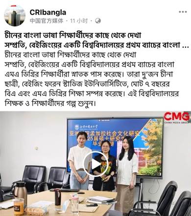 7月30日,中国中央广播电视总台孟加拉语部推出聚焦pg游戏电子模拟器孟加拉语专业的专题节目。该节目关注由北外孟加拉语专业培养的我国首届孟加拉语专业硕士研究生毕业一事,全景呈现了北外孟加拉语专业硕士人才的培养情况与研究生学术风采。