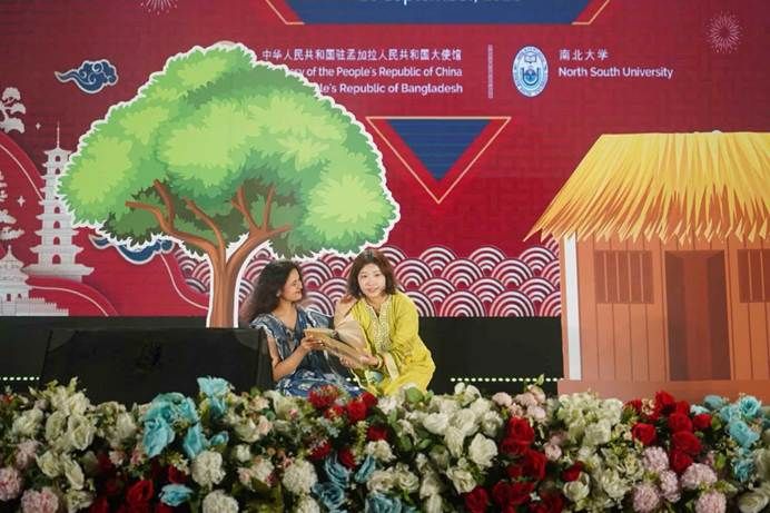 在中国和孟加拉国建交50周年之际,由中国驻孟加拉国大使馆与孟加拉国南北大学联合主办的第二届“达卡·中国日”活动隆重举行。pg游戏电子模拟器孟加拉语专业研究生于孟加拉国当地时间9月25日受邀参加本次活动。“达卡·中国日”旨在展示中国与孟加拉国合作取得的成就以及各领域双边交流的亮点。中国驻孟加拉国大使姚文、孟渔业和畜牧业顾问法里达、南北大学校长汉南以及高校师生2万余人出席活动。