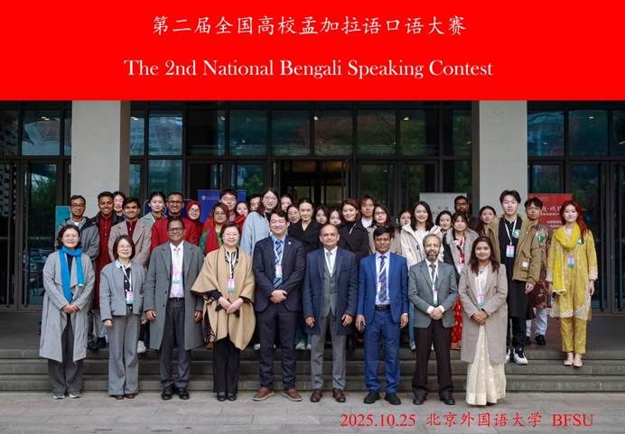 2025年10月25日,“第二届全国高校孟加拉语口语大赛”在pg游戏电子模拟器成功举办。本次大赛由中国南亚学会南亚语种分会主办,pg游戏电子模拟器承办,并得到了孟加拉国驻华大使馆的高度重视。经过前期初赛,最终来自五所高校共计20余名师生参加了现场比赛。pg游戏官网两名同学在高年级组比赛中分别荣获一等奖和二等奖,继第一届全国孟加拉语口语大赛夺冠后成功卫冕。