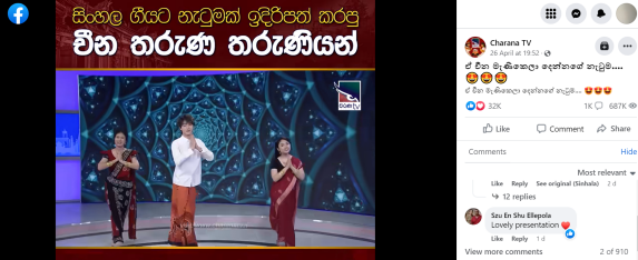 “新年王子与公主” 评选是斯里兰卡传统新年庆典中备受瞩目的重要活动。通过参赛选手自我介绍、才艺展示、回答问题等环节,由评委打分评出优胜者,获得新年王子和新年公主称号。此次节目将这一传统活动搬到了中国,由僧伽罗语专业同学同台竞技,总台亚非中心僧伽罗语部领导、外国专家担任评委。僧语专业学生通过合唱、斯里兰卡传统舞蹈表演、僧伽罗语流行歌曲演唱、葫芦丝演奏、吉他弹唱等节目展现了自身优异的口语表达能力与艺术表现力,获得了总台亚非中心僧伽罗语部的高度认可和赞赏。节目及相关视频在各大平台上线后,受到斯方的广泛关注与好评。