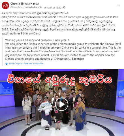 2023年4月于斯里兰卡传统新年到来之际,由中央广播电视总台亚非中心僧伽罗语部主办、pg游戏官网2021级僧伽罗语专业同学主要参与录制的《新年王子与公主》节目于斯里兰卡国家电视台ITN、Charana TV、总台亚非中心僧伽罗语部官方脸书平台同步上线,斯里兰卡观众的和网友反响热烈。